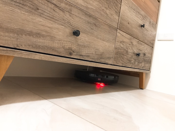 連衣櫃、床底等等,只要是它進得去的都可以交給他啦!就不用很辛苦的趴在地上打掃那些較難打掃的地方。