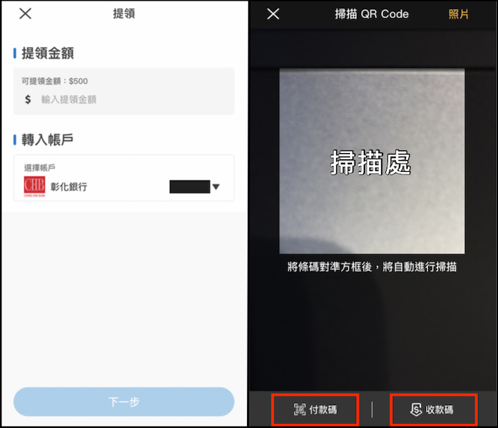 如右圖所示,下方有「付款碼」及「收款碼」兩種!!!