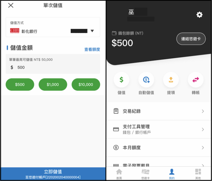 ⬆️進去後就會看到如左圖,我先儲值500元~~~(可自由輸入金額)