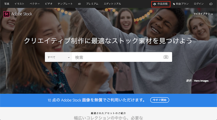 ⬆️進入Adobe Stock網站,看到右上方有一個「作品投稿」點進去。