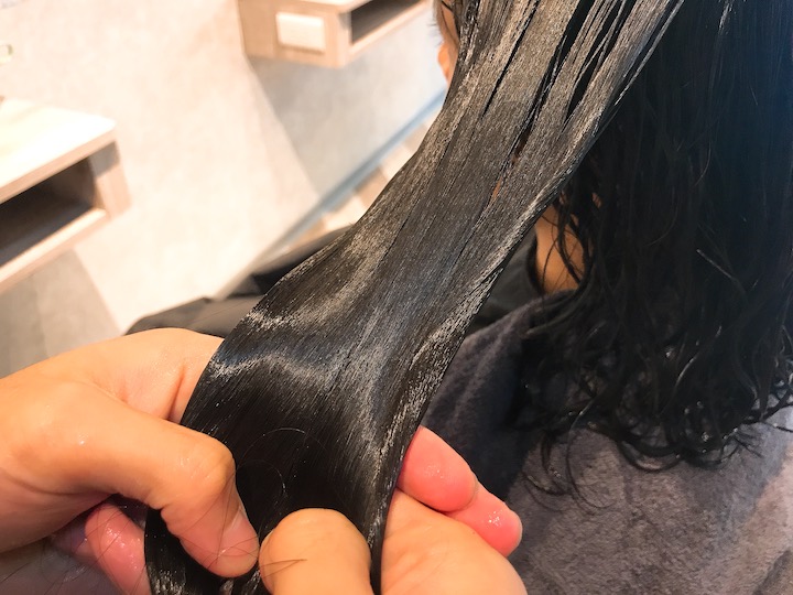 上第一段護髮,美髮師也很細心會讓整個髮絲都有塗抹到,