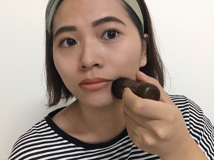 ⬆️將粉底液分布點在臉上,再使用小顏刷拉提推開,