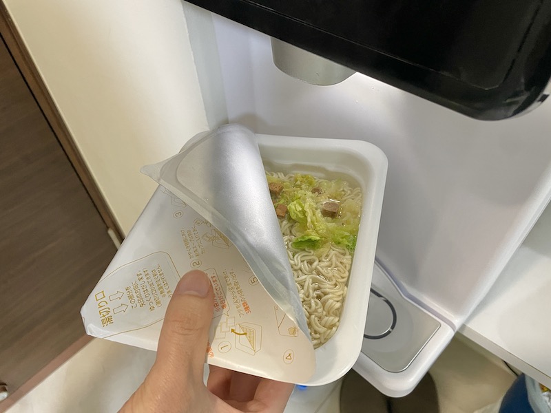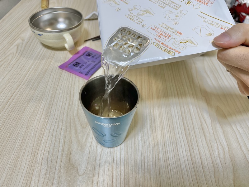 如果想要邊喝湯就另外準備碗或杯子,直接用泡麵的熱水泡,剩餘熱水再倒掉即可!