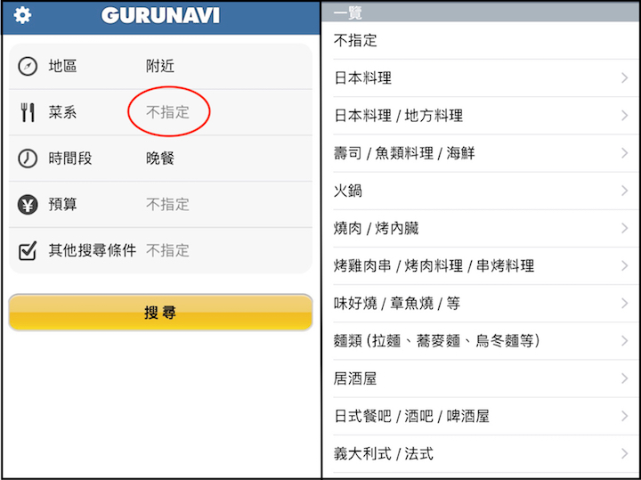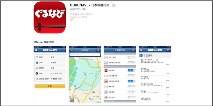 在日本吃美食是必定的行程,但有時候原本預定好的餐廳沒開,或是人太多、行程變更等等原因需要找餐廳吃飯時,這時候這個APP就非常好用了!「ぐるなび」是在日本也被廣泛使用的一個程式。想要搜尋餐廳,必須快下載此APP囉!!!