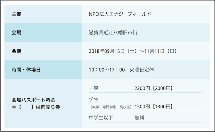 琵琶湖藝術祭位於日本滋賀縣的近江八幡。近江八幡為近江時期商人的發祥地,這邊的建物是由「豊臣秀次」所建造而成的家町,但因時間的經過,這些建築漸漸被荒廢,市景也被新時代建物給取代。