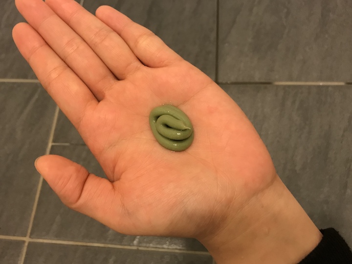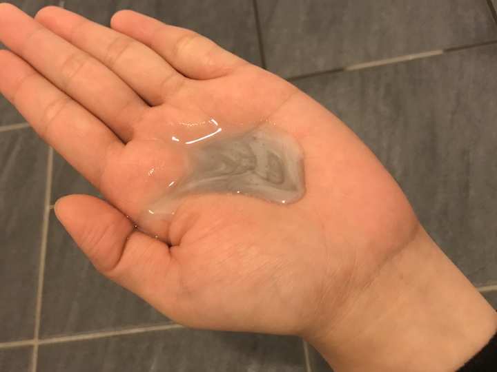 因為是添加布列塔尼海泥成分,所以擠出來有海泥的顏色。而且一打開瓶蓋就可以聞到香香的玫瑰味♡