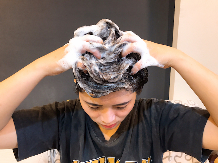 一開始先使用洗髮乳,如上圖。