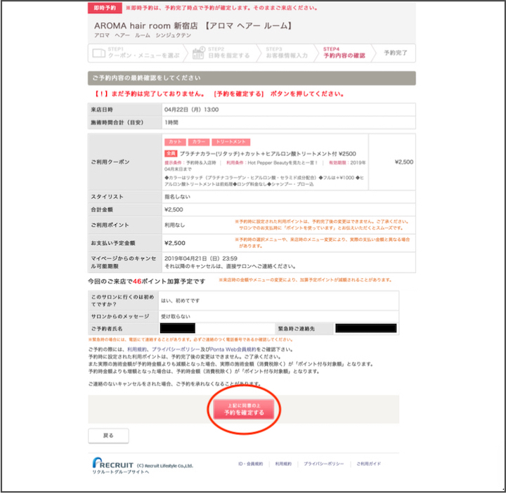 最後就是會有一整個的「預約內容確認」。