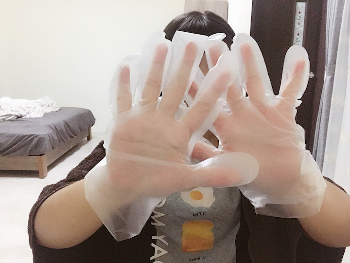 ⬆️戴上手套,建議可以在手套口那邊繫上橡皮筋以防手套脫落。