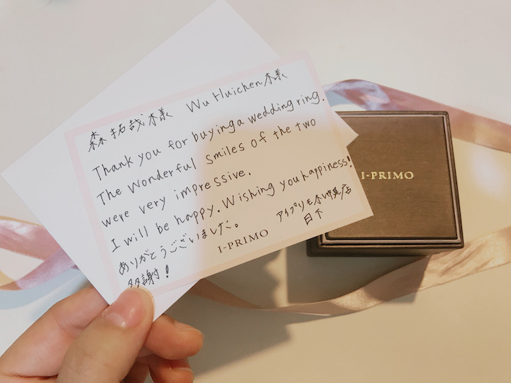 看上的一個對戒價格是比I-PRIMO還要貴上好幾萬日幣,所以我們當下很猶豫。