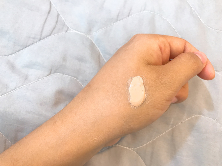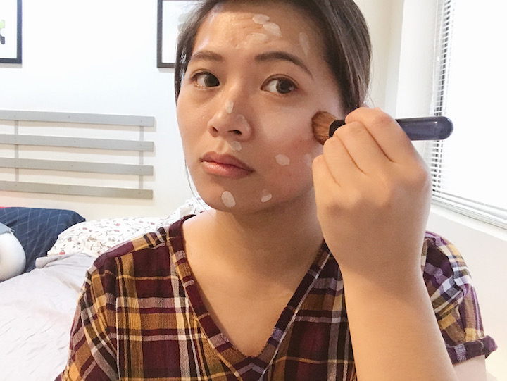 我習慣先將粉底液擠在手上,然後再用手指均勻地點在全臉。