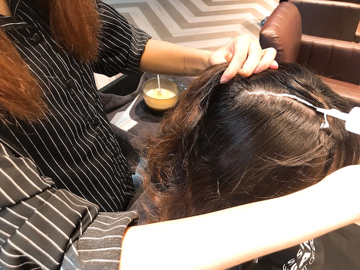 染髮前會先做頭皮隔離。