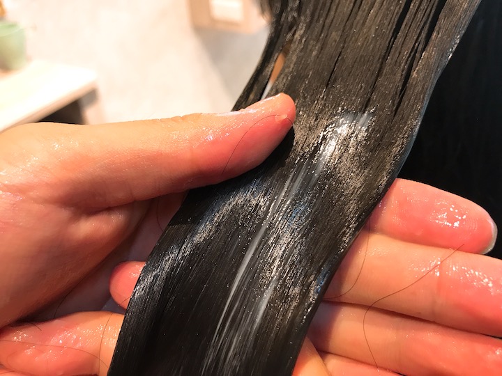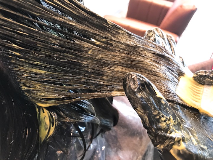 上第一段護髮,美髮師也很細心會讓整個髮絲都有塗抹到,