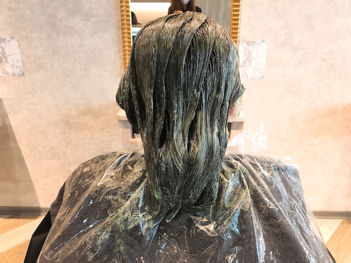 但因為剛染好加上店裡光線偏黃所以綠色調拍不太出來,